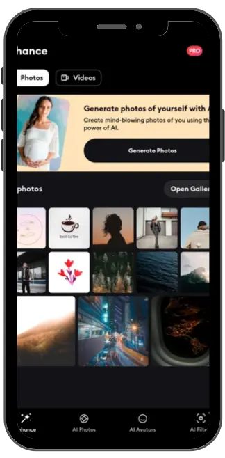 - Tap the “Enhance” option and select a photo or video you want to improve using AI tools.